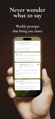 Štai kaip tai paprasta: kiekvieną savaitę kiekvienas jūsų pasirinkto rato narys dalinasi trumpa (2-3 minučių) vaizdo žinute, o jūs jas peržiūrite ir atsakote, kai jums patogu. Tai nėra eilinė socialinė platforma; „Gather" sukurtas artimiausiems ryšiams, todėl jame nėra viešų srautų, sekėjų ar algoritmų. Mėgaukitės tikru privatumu, kuriame jūsų pokalbiai išlieka tarp jūsų ir jums rūpimų žmonių. Be to, kiekviena savaitė atneša naują pokalbio temą, kuri padeda lengviau dalintis mintimis ir jausmais, paverčiant „ką pasakyti?" klausimą nuoširdžiu pasakojimu.