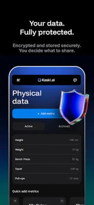 Stebėkite savo progresą vienoje vietoje, registruodami treniruotes, varžybas ir pažangą, analizuodami fizinius rodiklius bei sujungdami mentalinį ir fizinį pasirengimą, kad gautumėte išsamų vystymosi vaizdą. Be to, Kaski.ai suteikia galimybę saugiai dalintis našumo duomenimis, asmenybės įžvalgomis ir treniruočių metrikomis su treneriais ar komandos draugais, taip gerinant bendradarbiavimą ir abipusį supratimą. Jūsų privatumas yra įdiegtas į Kaski.ai pagrindą: visi asmeniniai duomenys yra užšifruojami prieš saugojimą, o jokia asmenį identifikuojanti informacija nėra dalinama. Jūs patys sprendžiate, ką ir su kuo dalintis.