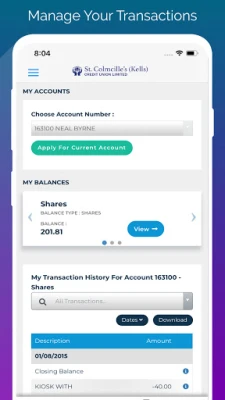 „Kells Credit Union" programėlė siūlo saugų prisijungimą (įskaitant biometrinį), leidžia lengvai valdyti finansus: peržiūrėti balansus, atlikti mokėjimus, pervedimus ir tvarkyti gavėjus. Patogiai teikite paskolos paraiškas su el. parašais ir stebėkite jų statusą. Atnaujinkite savo profilį bet kada ir bet kur.