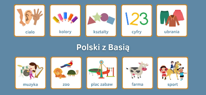 „Polski z Basią" siūlo plačią ir kruopščiai paruoštą mokymosi patirtį, apimančią net 13 skirtingų temų, tokių kaip „Ūkis", „Drabužiai", „Spalvos", „Transportas", „Skaičiai", „Formos" ir daugelis kitų. Kiekviename žingsnyje laukia profesionalų sukurta grafika ir šiltas, moteriškas balsas, kuris padeda įsisavinti taisyklingą žodžių tarimą ir rašybą. Ambitūs žaidimai – atminties lavinimas, dėlionės ir viktorinos – užtikrina, kad mokymasis būtų dinamiškas, skatinantis susikaupimą ir nuolatinį žinių įgijimą.
