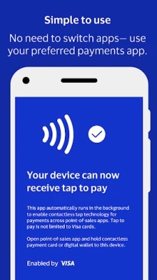 „Visa's Tap to Pay Ready App" yra pagalbinė programa, skirta sklandžiai integracijai su jūsų pagrindine pardavimo vietos programa. Ji leidžia priimti bekontakčius mokėjimus tiesiai jūsų „Android" įrenginiu, paverčiant jį patogiu ir saugiu terminalu, kuris palengvina kasdienes operacijas.